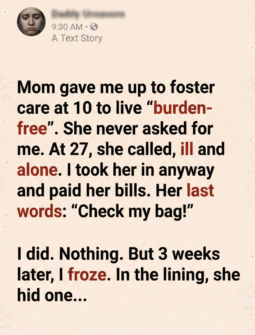 She packed my clothes into a plastic bag, kissed my forehead once, and left me at the foster office without looking back. Later, I learned the truth: she wanted a life without responsibility. Without me. She never called. Never asked about school. Never tried to find me again.