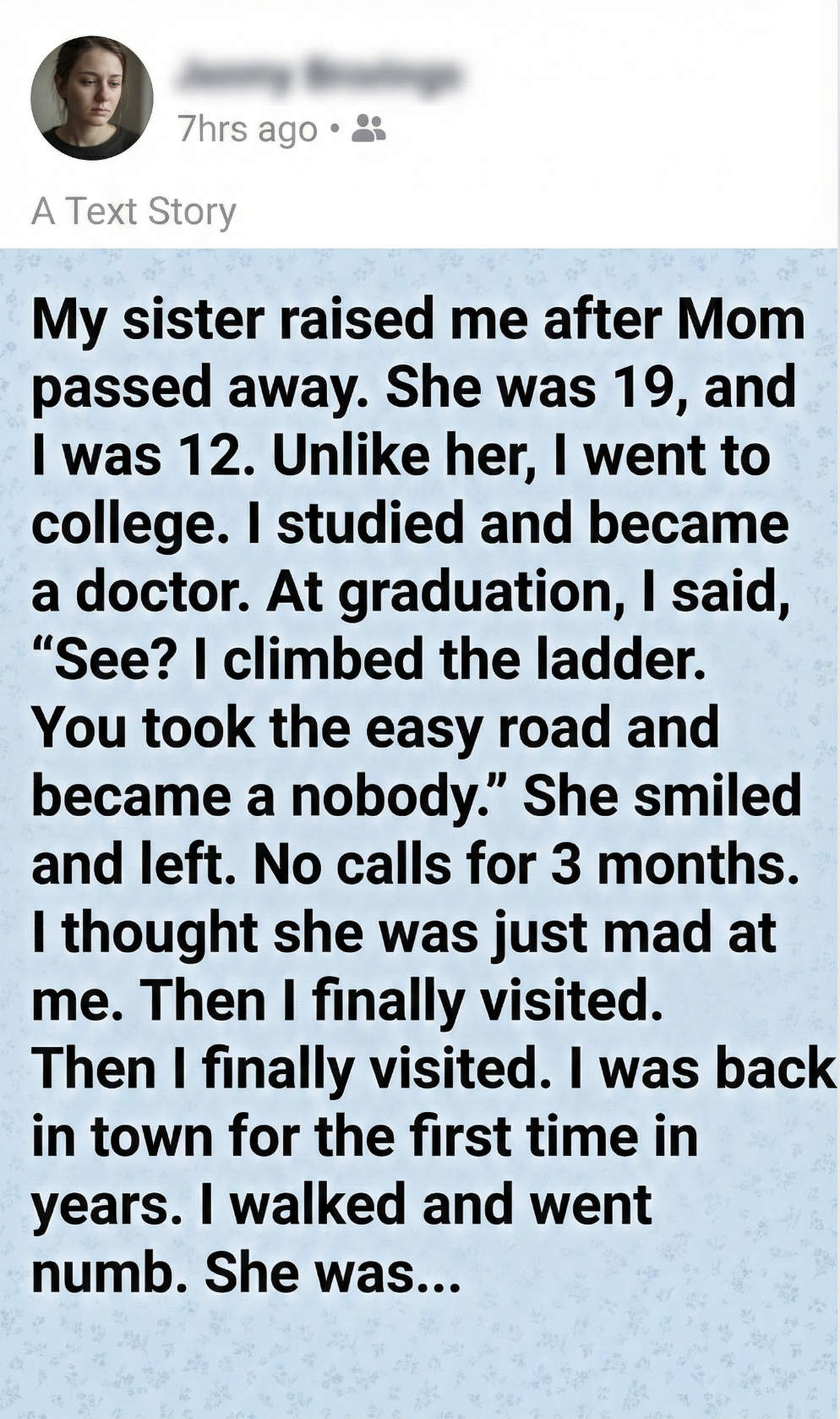 At my graduation, people clapped. Professors praised me. Relatives shook my hand and said, “Your sister must be so proud.”