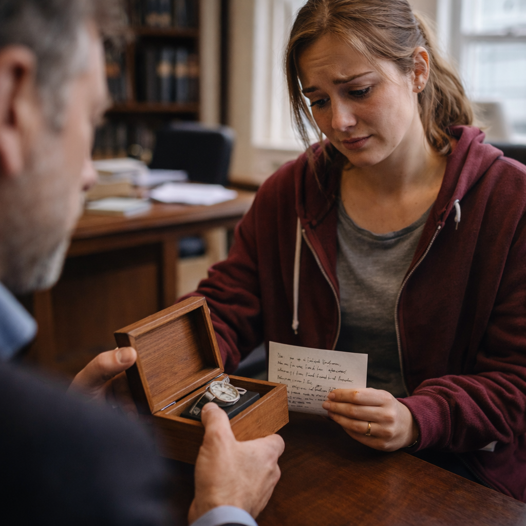 When I arrived at his office, the mood was heavy. The lawyer didn’t ask how I was doing. He didn’t offer condolences. He simply reached into a drawer and placed a small wooden box on the desk in front of me.