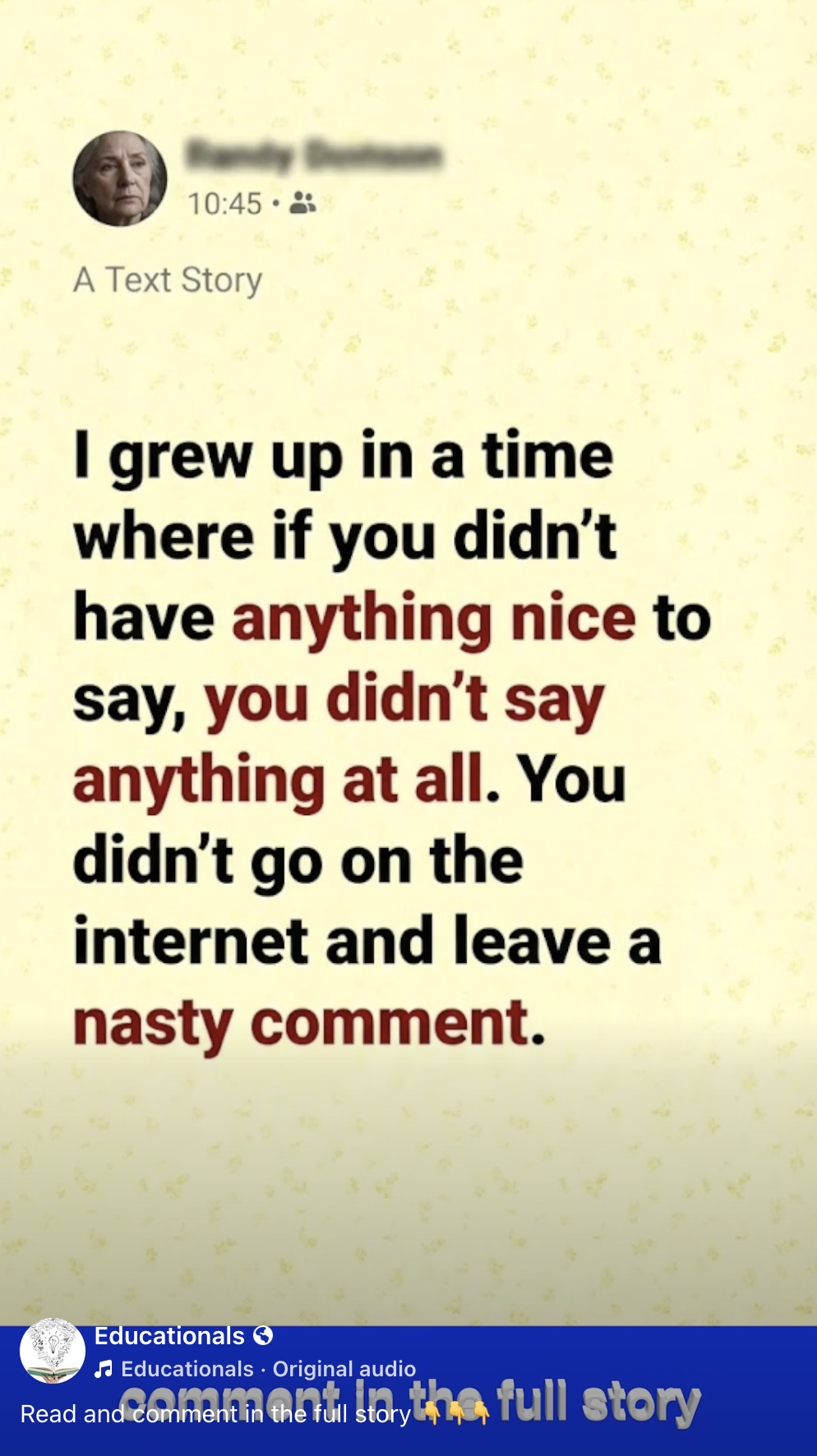 I looked at my own phone, thinking about the comment I had almost posted earlier that day. I deleted it.