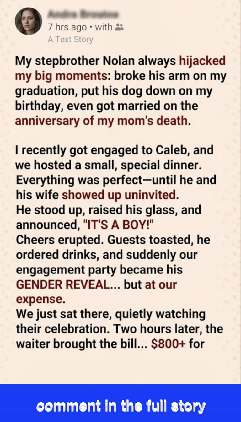 I looked at the bill. I looked at Nolan’s smug face. And for the first time in my life, I didn’t let him hijack the ending.