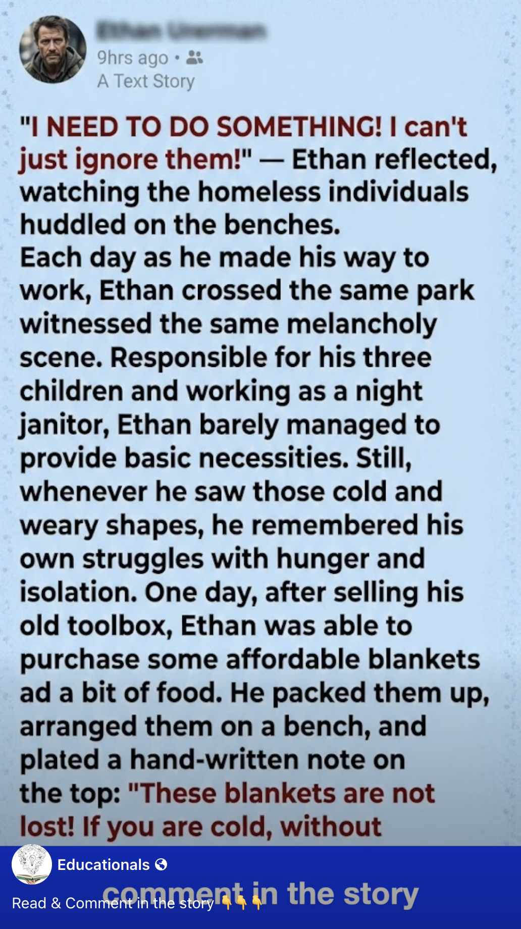 I NEED TO DO SOMETHING! I can’t just ignore them!” — Ethan reflected, watching the homeless individuals huddled on the benches. It was freezing outside, and every day on his walk to his night shift, he saw them shivering.