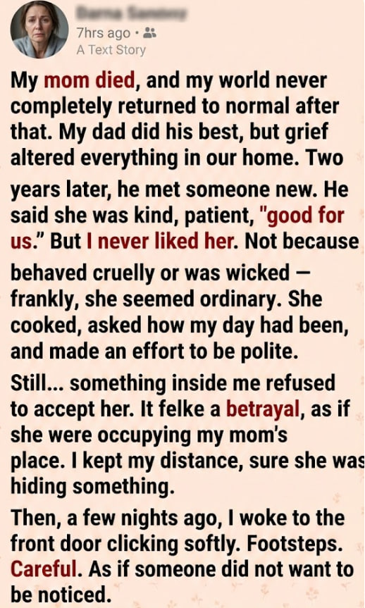 The refrigerator hummed too loudly. The clock ticked like a hammer. Even my dad’s footsteps felt heavier, like the floor itself was grieving.