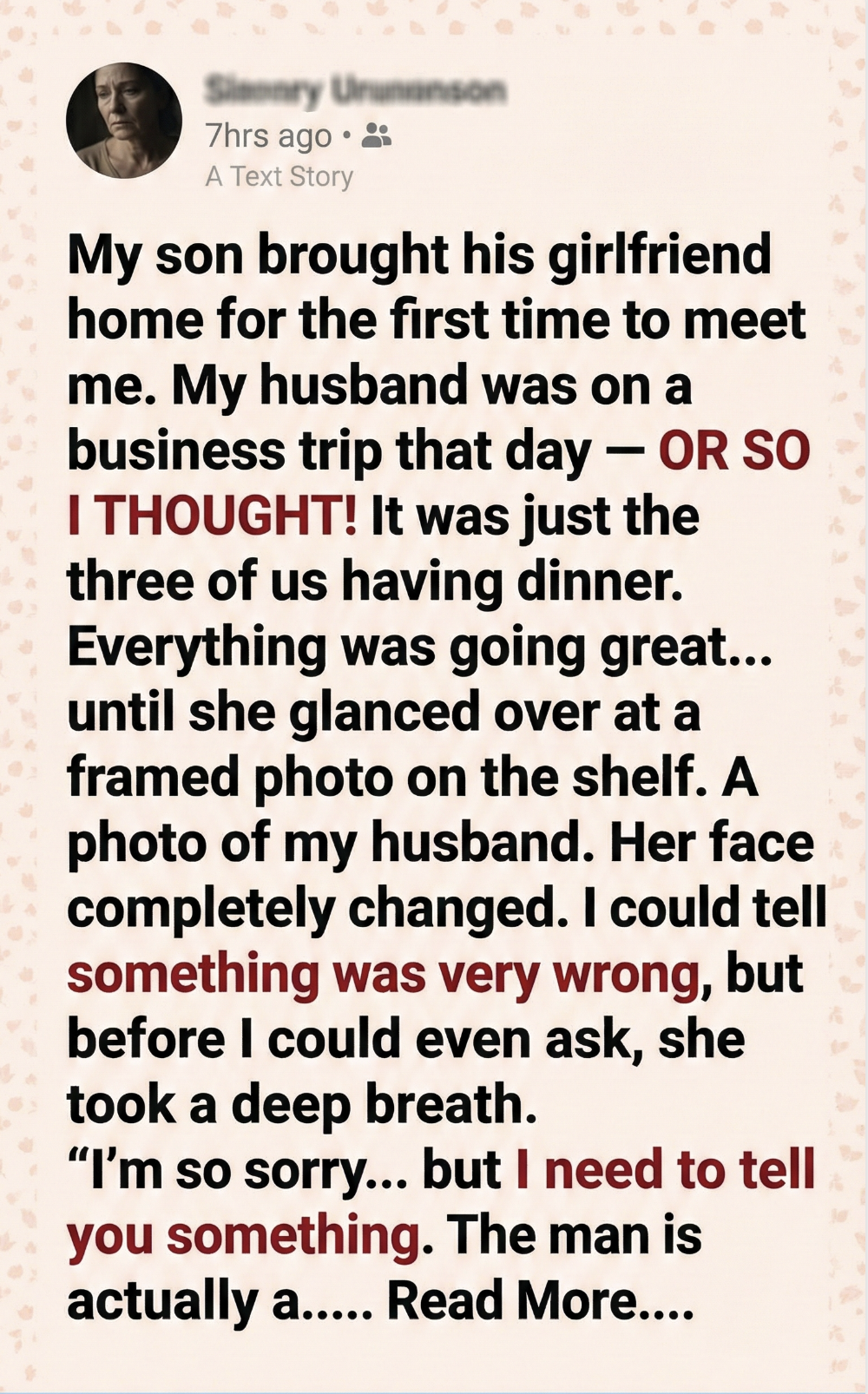 Laura thought meeting her son’s girlfriend would be a joyful milestone. Instead, one family photo exposed a devastating secret: Sophie recognized the man in the frame. He wasn’t just Ryan’s father—he was living a double life. What followed was a night of betrayal, confrontation, and the collapse of a twenty-year marriage.