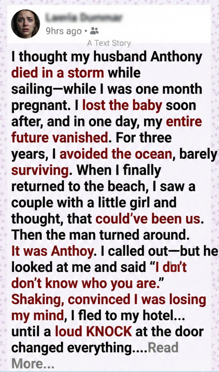 I thought I had buried my past along with my husband, who I believed had died three years ago. But on a distant beach, I saw him — alive, smiling, holding hands with a woman and a little girl. My world shattered all over again. Was it really him? And why was he with another family?