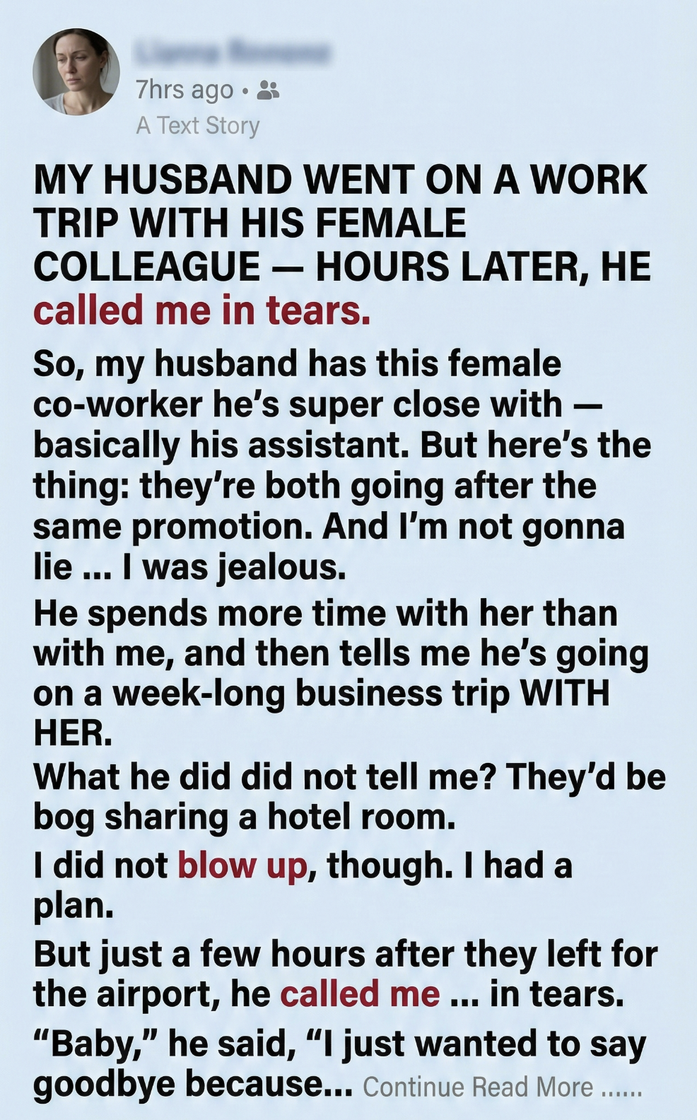 So, my husband has this female coworker he’s extremely close with—basically his assistant. They talk constantly, work late together, travel together. I tried not to be that wife, but I won’t lie… I was jealous.