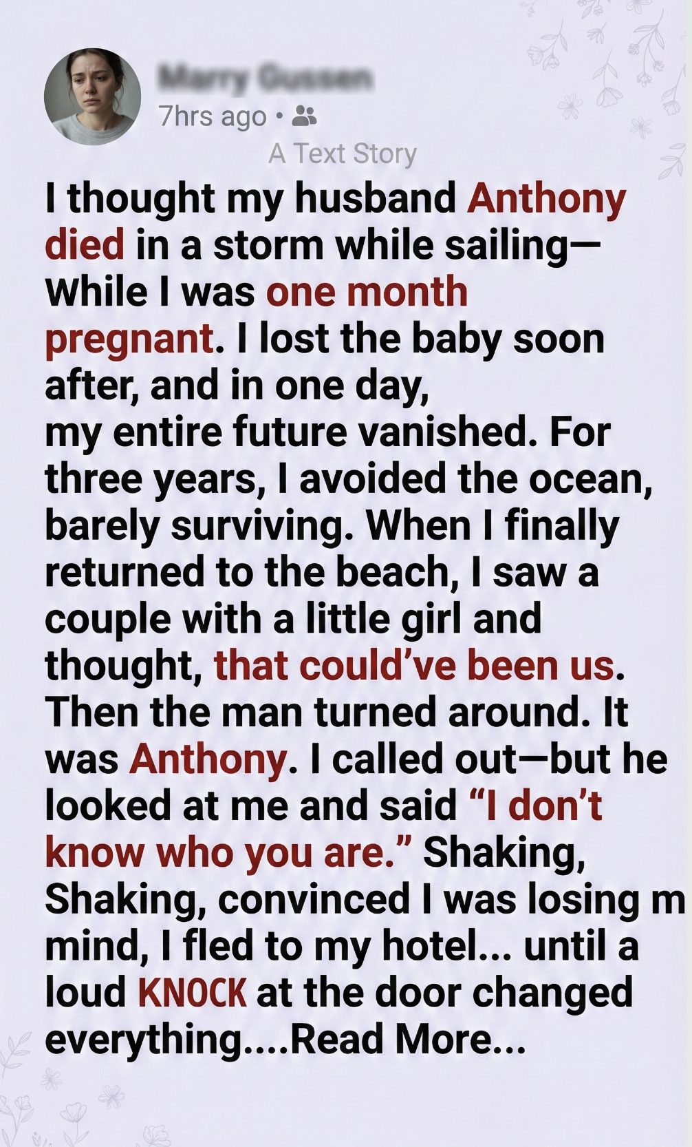 I thought I had buried my past along with my husband, who I believed had died three years ago. But on a distant beach, I saw him — alive, smiling, holding hands with a woman and a little girl. My world shattered all over again. Was it really him? And why was he with another family?