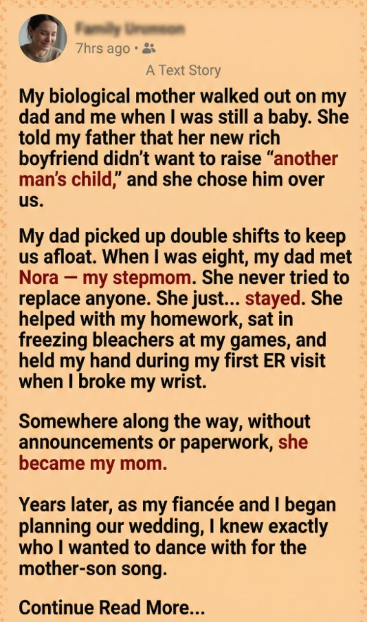My biological mother walked out on my dad and me when I was still a baby. She told my father that her new rich boyfriend didn’t want to raise “another man’s child,” and she chose him over us.