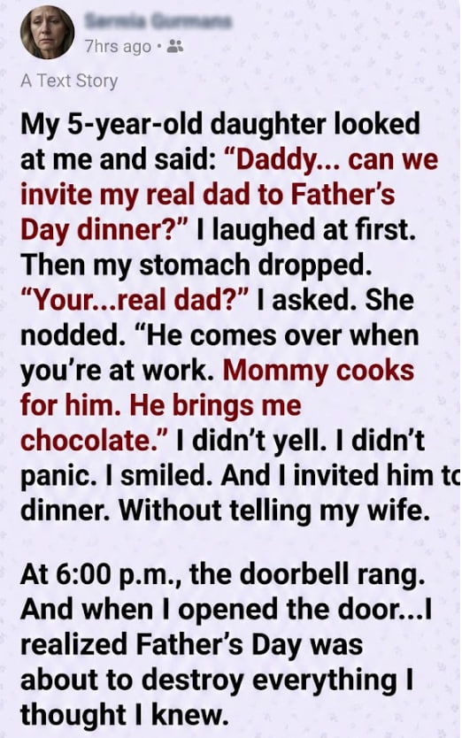 The truth spilled out quickly after that. There was no dramatic confession—just excuses, half-answers, and silence where honesty should’ve been. The man admitted he wasn’t my daughter’s biological father, but he’d let her believe it because it “felt easier.” My wife admitted she never corrected her because she didn’t know how.
