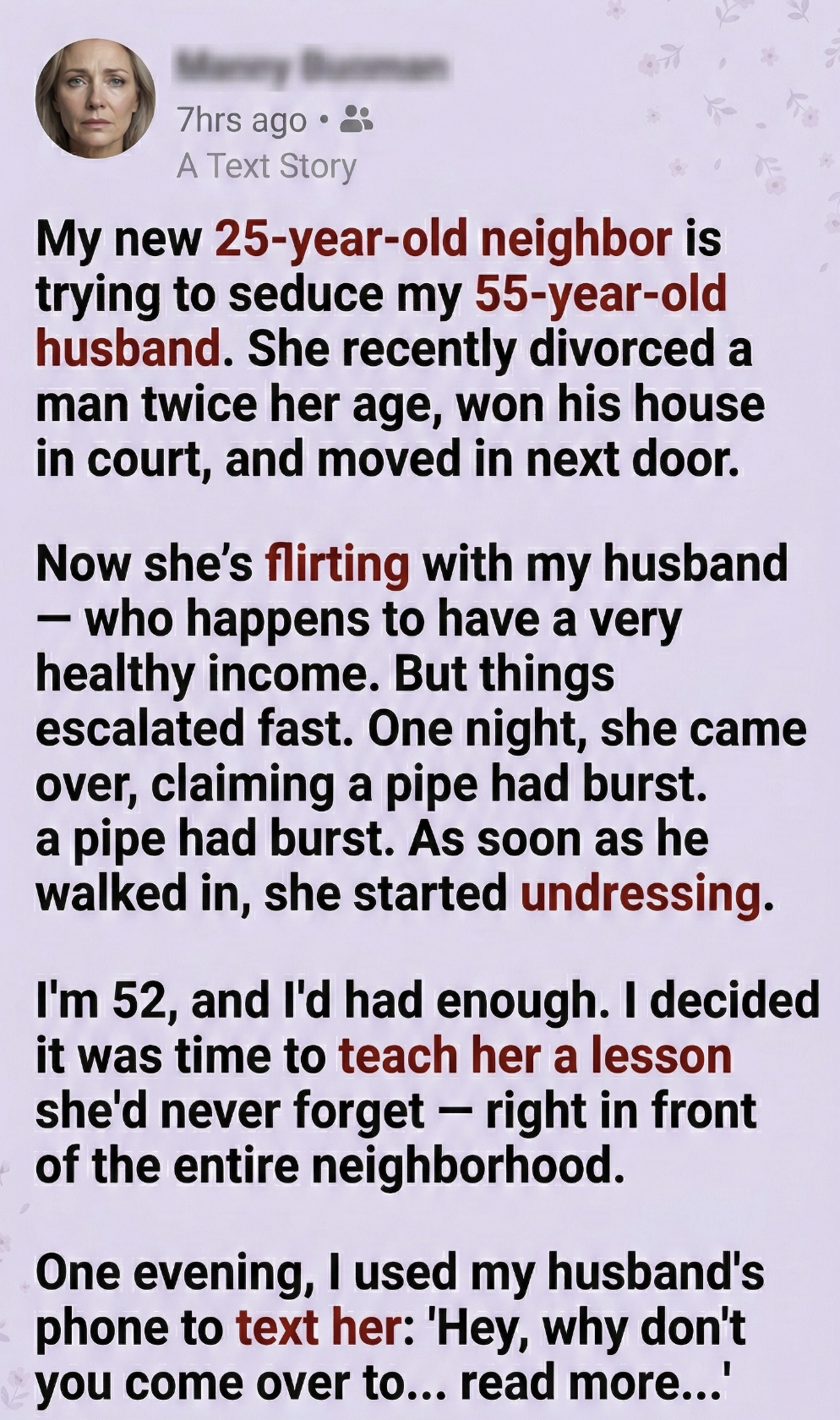 The aftermath was swift. She couldn’t walk to her mailbox without the neighbors snickering. Mrs. Higgins made sure the story reached three towns over by the next morning. A “For Sale” sign went up in Tiffany’s yard less than a week later. She moved out in the middle of the night, and my husband and I have enjoyed our peace and quiet ever since.