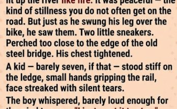 The biker, a man named Jack who had spent the last decade running from his own ghosts, felt the world stop. He looked at the boy’s trembling shoulders and saw himself forty years ago. He didn’t panic. He knew that one wrong move, one sudden lunge, and gravity would win.