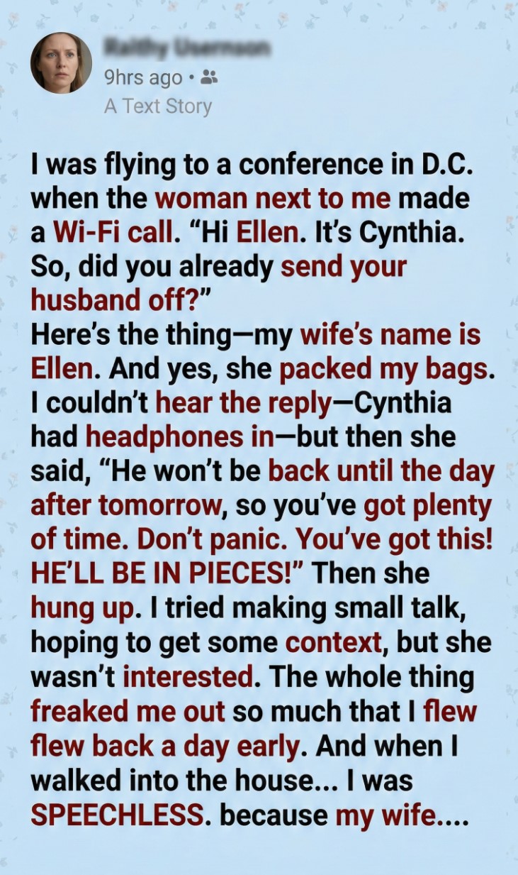And yes—she had packed my bags that morning, kissed me goodbye, and joked about enjoying the house to herself while I was gone.