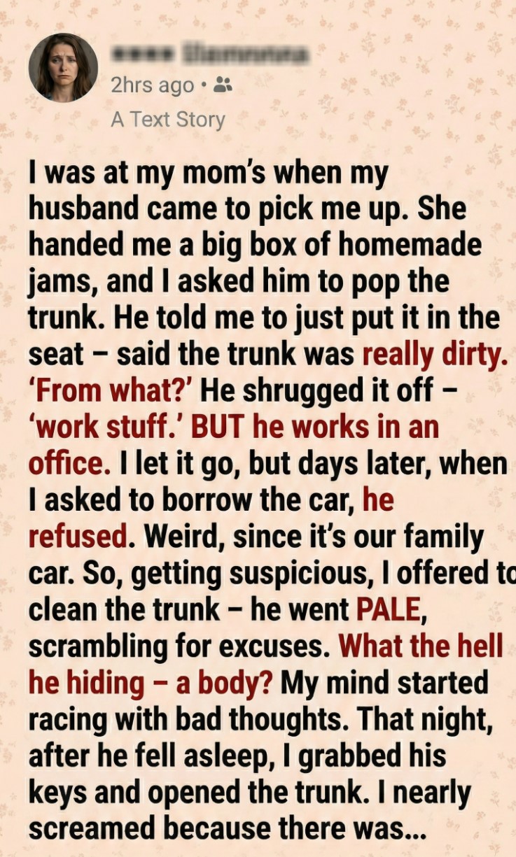 The air in the garage felt different. Too still. Like the car was holding its breath. I turned the key in the trunk lock and heard the soft mechanical click.