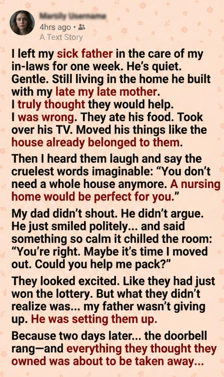“Oh yes, dear,” she said. “We’ll take good care of him.”