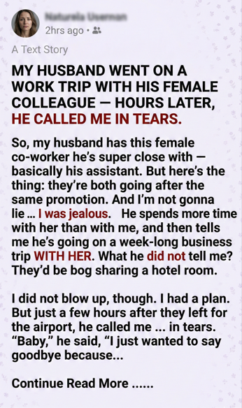 So, my husband has this female coworker he’s extremely close with—basically his assistant. They talk constantly, work late together, travel together. I tried not to be that wife, but I won’t lie… I was jealous.