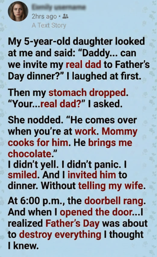 The truth spilled out quickly after that. There was no dramatic confession—just excuses, half-answers, and silence where honesty should’ve been. The man admitted he wasn’t my daughter’s biological father, but he’d let her believe it because it “felt easier.” My wife admitted she never corrected her because she didn’t know how.