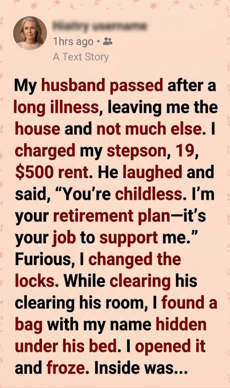 My stepson was nineteen then. Bright, capable, and so much like his father that seeing him standing in the doorway sometimes caught me off guard. He’d lived with us throughout the illness, watching me juggle hospital visits, overnight work shifts, and stacks of unpaid bills.