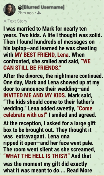 When Sarah is invited to the wedding of her ex-husband and ex-best friend, she chooses grace over chaos, or so it seems. In a story about betrayal, resilience, and the power of quiet truth, one woman brings a gift that no one saw coming… and no one will ever forget.