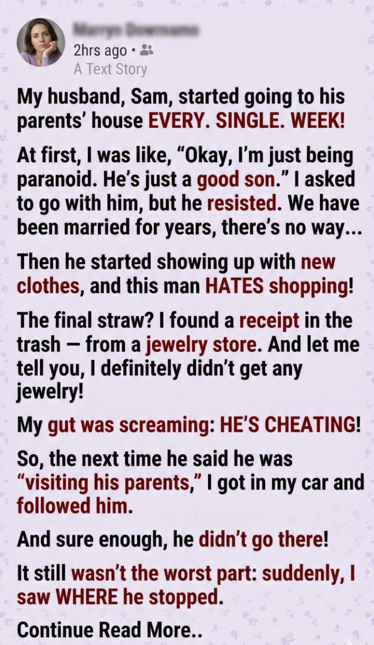 I sat in my car across the street, my heart pounding. None of this made sense. If he was cheating, why would he come here?