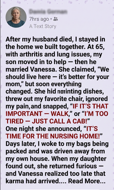 I never imagined my son and his wife would be the ones to turn me out of the home filled with my husband’s memory. But what happened next proved that betrayal never goes unanswered.
