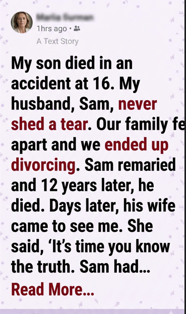 The day our son Leo died, the sun still shone, an insult in its own way. Leo, just sixteen, was gone in an instant, leaving me to drown in grief. I thought my marriage would anchor me, but my husband, Sam, retreated into a silence I couldn’t reach. He didn’t cry, didn’t speak about Leo—he simply withdrew. Eventually, we drifted apart, and Sam remarried, leaving me to nurse years of bitterness and resentment.