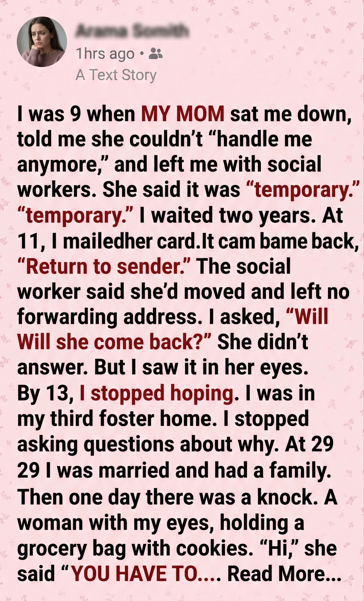For two years, I clung to that word. At 11, I mailed Mom a birthday card. Two weeks later, it came back stamped Return to Sender.