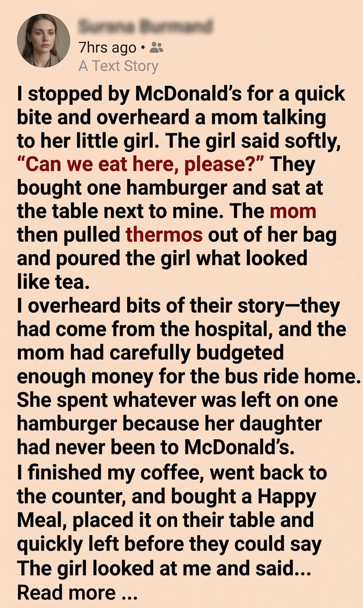 But the little girl kept staring at the bright red Happy Meal box like it was treasure. “I’ve only seen these on TV,” she whispered.