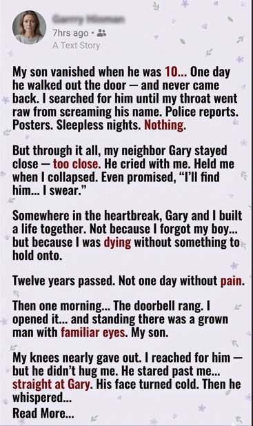 My son vanished when he was only ten years old.