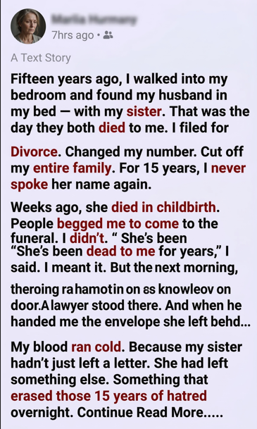 Fifteen years ago, I walked into my own bedroom and found my husband in our bed — with my sister.