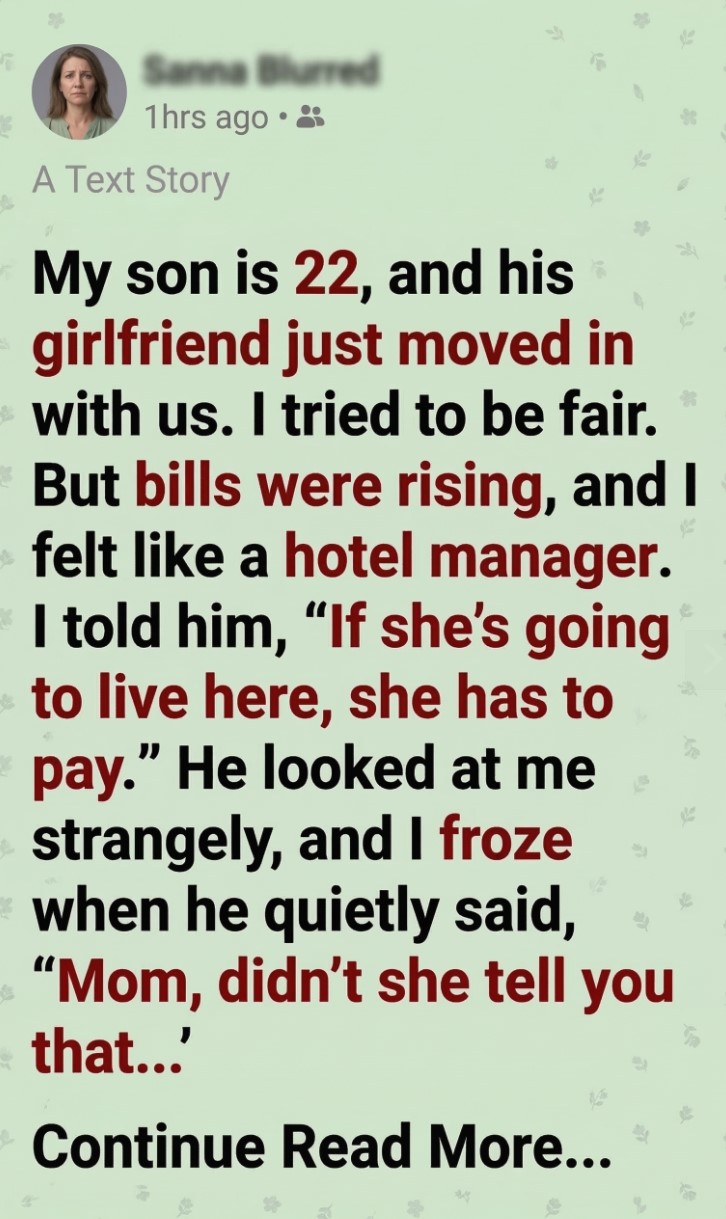 I’ve been raising my son alone since he was 5. He’s 22 now, and his girlfriend, Mia, started staying here full-time. At first, I tried to be fair. But bills were rising, and I felt like a hotel manager.
