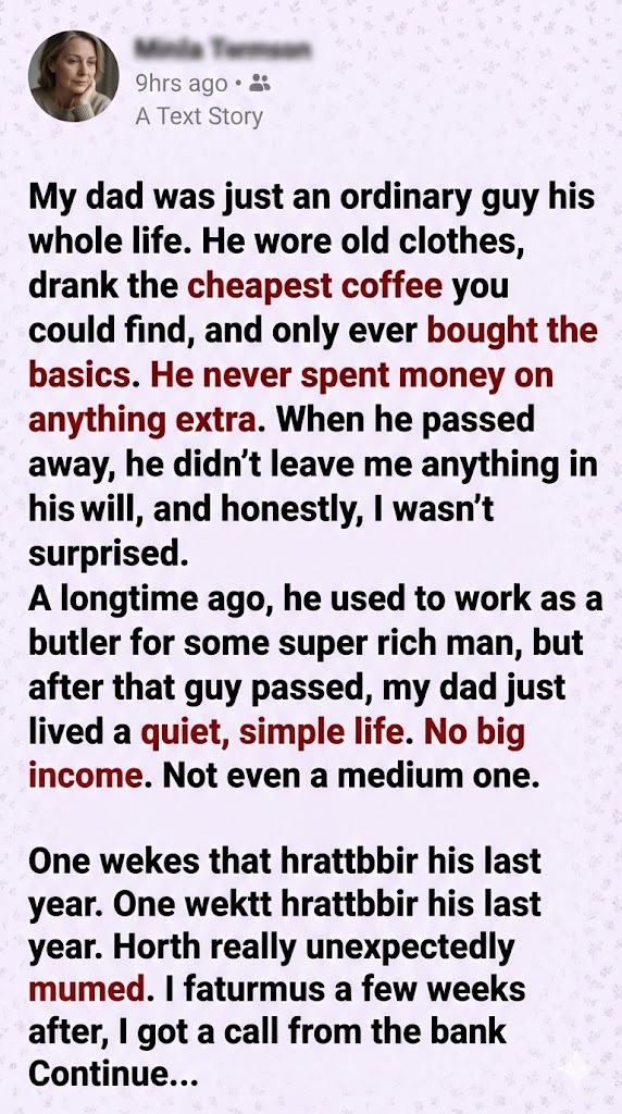 My dad was just an ordinary man his whole life. He wore the same jackets until the elbows gave out, drank instant coffee, and never spent money on anything extra—not even when he got a raise or when I begged him to upgrade that rusted-out car. He was frugal to the bone, and he never explained why.