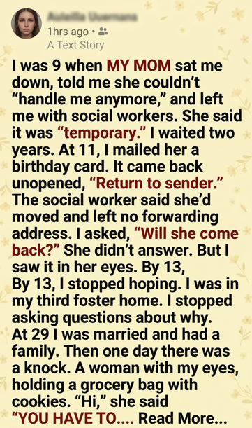 For two years, I clung to that word. At 11, I mailed Mom a birthday card. Two weeks later, it came back stamped Return to Sender.
