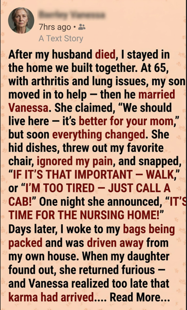 I never imagined my son and his wife would be the ones to turn me out of the home filled with my husband’s memory. But what happened next proved that betrayal never goes unanswered.