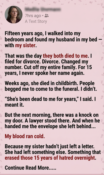 Fifteen years ago, I walked into my own bedroom and found my husband in our bed — with my sister.