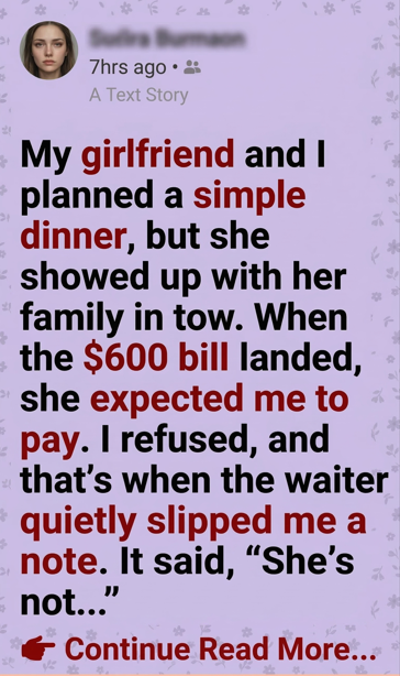 Nothing extravagant. Just a quiet Friday night at a mid-range restaurant downtown. We’d both had long weeks, and I thought it would be a nice chance to unwind, talk, and maybe discuss the next step in our relationship. We’d been together almost a year. I was starting to think about the future.