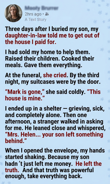 “Mom,” it began, in his familiar handwriting. “If you’re reading this, it means I didn’t get the chance to fix everything myself. I love my wife, but I’ve seen changes in her. I need to know you’ll be safe no matter what.”