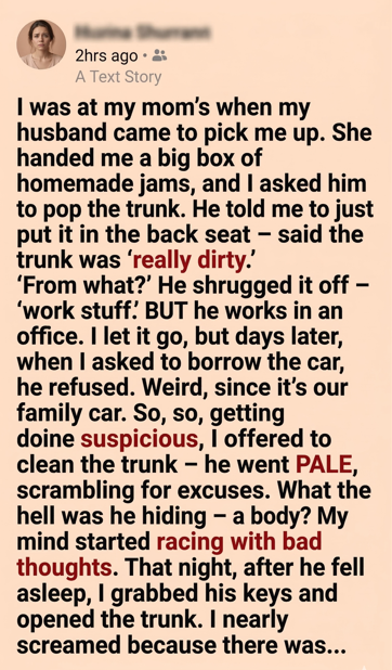 The air in the garage felt different. Too still. Like the car was holding its breath. I turned the key in the trunk lock and heard the soft mechanical click.