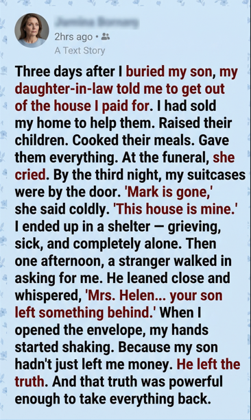 “Mom,” it began, in his familiar handwriting. “If you’re reading this, it means I didn’t get the chance to fix everything myself. I love my wife, but I’ve seen changes in her. I need to know you’ll be safe no matter what.”