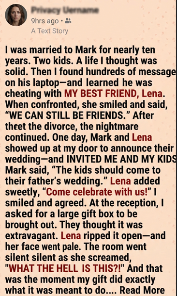 When Sarah is invited to the wedding of her ex-husband and ex-best friend, she chooses grace over chaos, or so it seems. In a story about betrayal, resilience, and the power of quiet truth, one woman brings a gift that no one saw coming… and no one will ever forget.