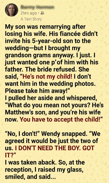 When my son Matthew announced he was getting married again, I wanted to be happy for him. But deep down, I felt uneasy — especially when I realized his fiancée, Wendy, had no interest in getting to know Alex, my five-year-old grandson. Alex had been living with me ever since his mother passed away.