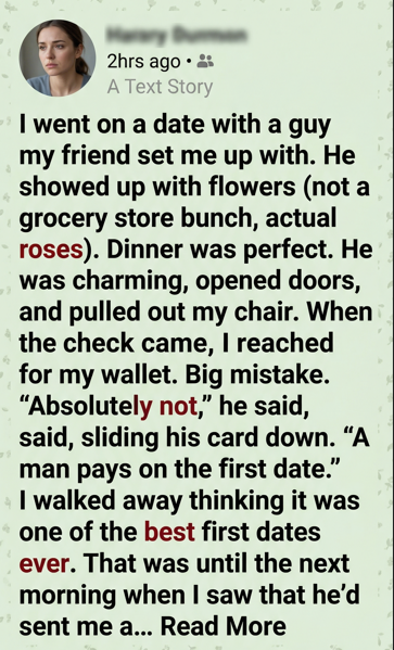 I thought about sending the money just to avoid the awkwardness. But something about the whole thing felt… transactional. Like the flowers, the door-opening, the chair-pulling — all of it was part of some script.