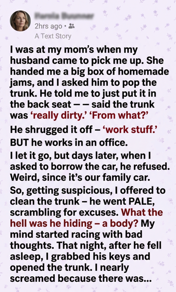 The air in the garage felt different. Too still. Like the car was holding its breath. I turned the key in the trunk lock and heard the soft mechanical click.