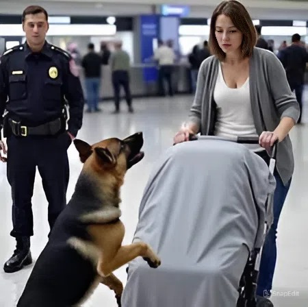 On what seemed like a normal day at the airport, passengers hurried to catch flights, families gathered near check-in counters, and travelers wheeled luggage across shiny floors. But amid the everyday bustle, Luna suddenly stiffened. Her ears shot up, her body grew tense, and her sharp eyes locked on a woman pushing a baby stroller.