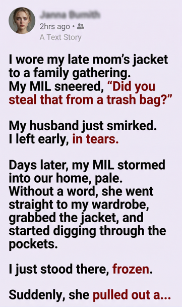 After that, the jacket returned to my closet, respected and untouched. My mother-in-law never mocked my mother again.
