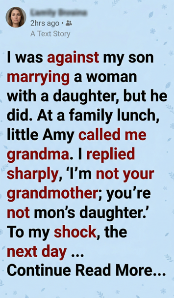 The next day, I woke up still thinking about the lunch. The words I had said to little Amy echoed in my head. I tried to convince myself that I was right—that she wasn’t really my granddaughter.