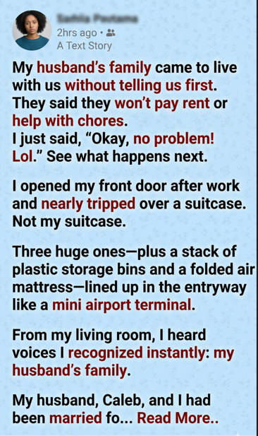 Then I walked out the door for work, leaving three suitcases, a shocked husband, and an entire family realizing they had picked the wrong house to treat like a free hotel.