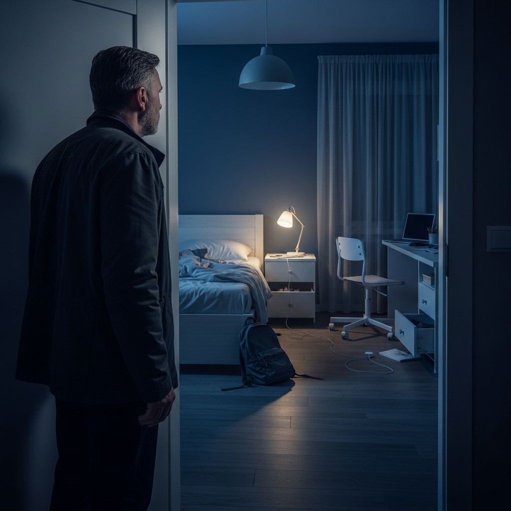 Her bed was made, like she hadn’t planned to sleep in it. Her backpack was gone. Her phone charger dangled unplugged from the wall. Her jacket—the one she always wore, even in warm weather—was missing.