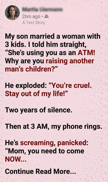 His voice was raw, shaking, desperate. “Mom, you need to come. NOW.”