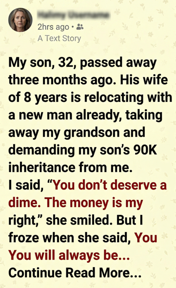 “That money was meant to help raise his child,” she replied. “Your grandson. Not for me… for him.”