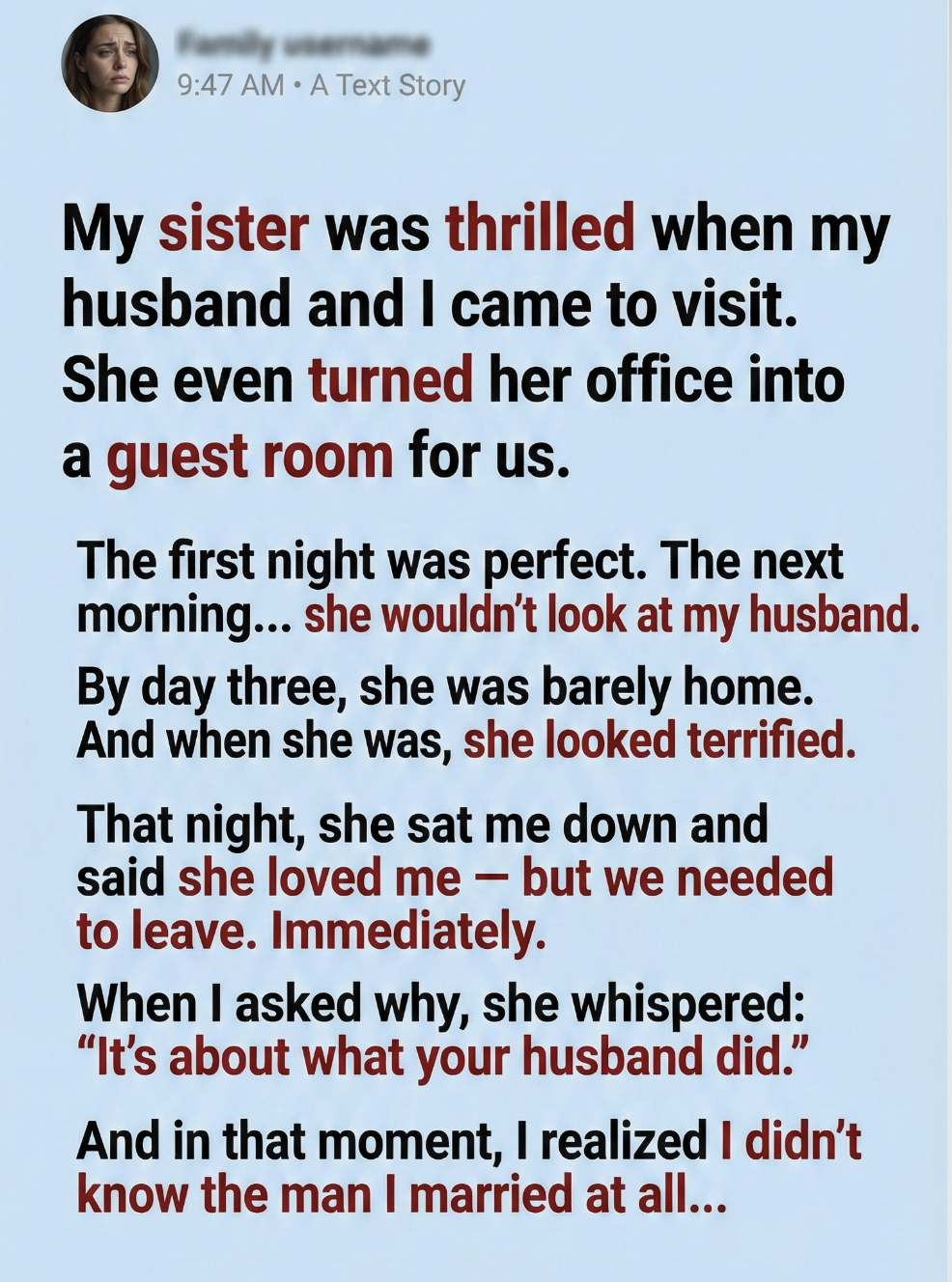 My sister barely acknowledged my husband. She answered him with one-word replies. She wouldn’t sit next to him. When he walked into a room, she found a reason to leave. I noticed it, but I brushed it off. She’d lived alone for years — maybe having a man in her space made her uncomfortable.